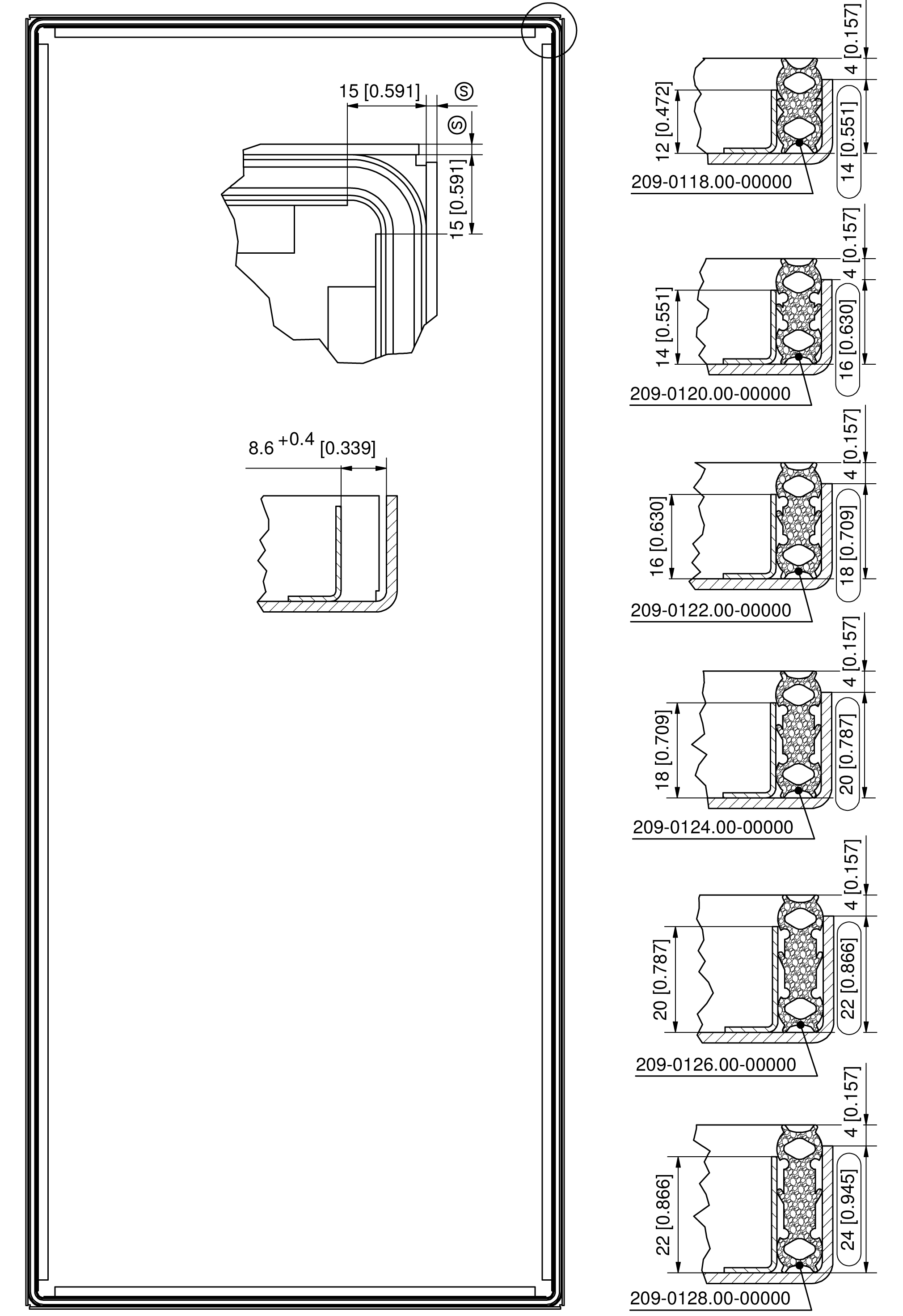 Четырехкромочный уплотнительный профиль 5-100