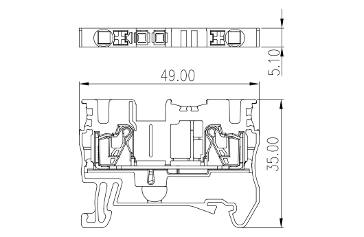 Одноуровневая проходная клеммная колодка, конструкция Push-in, ширина 5.1 мм, 600V, 20A