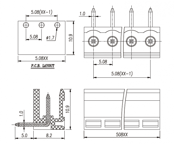 Клеммник на плату HT508R-5.08-06P